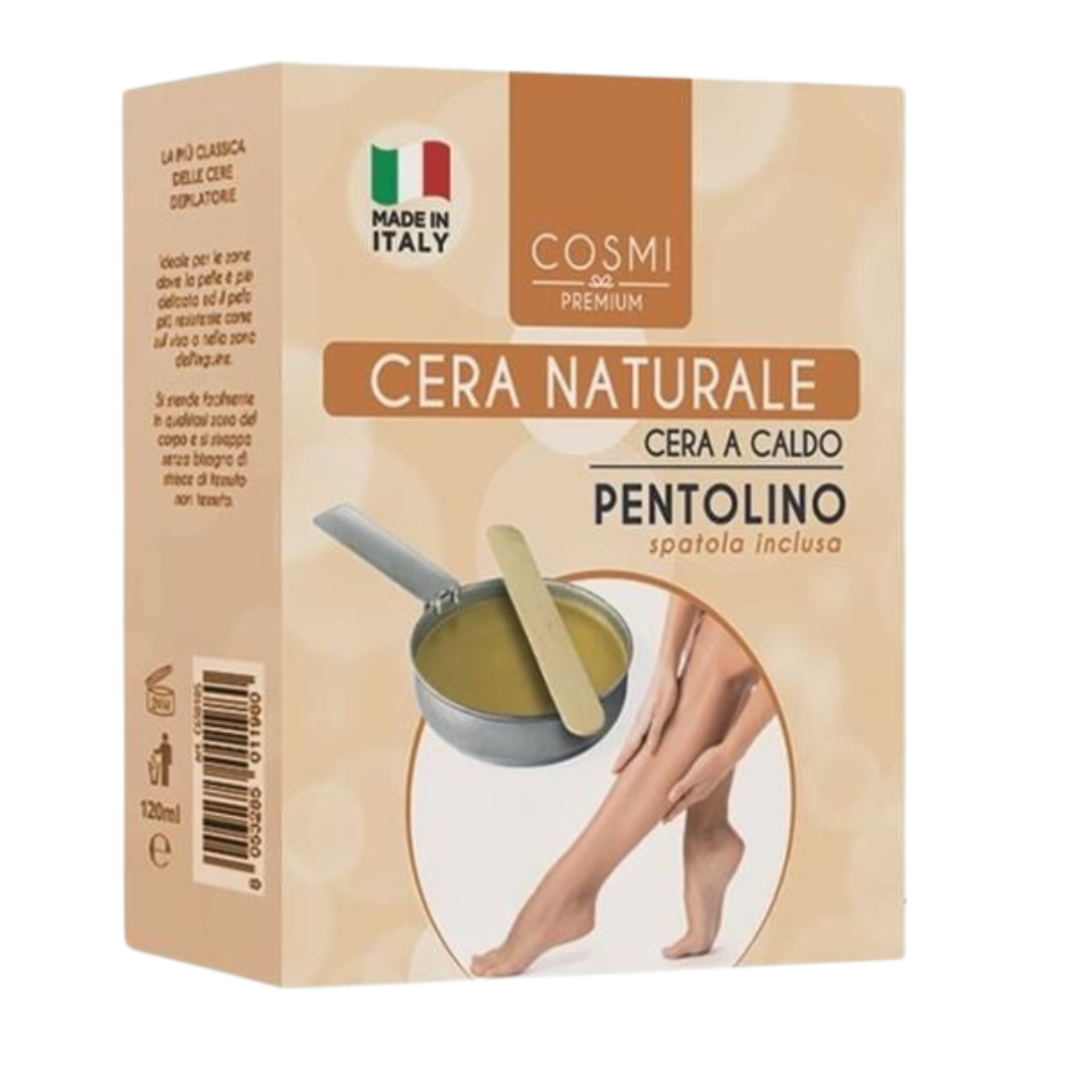 Scegli la cera naturale a caldo Cosmi, un prodotto di qualità, facile da usare e perfetto per chi desidera una depilazione efficace e duratura, sia a casa che in viaggio.