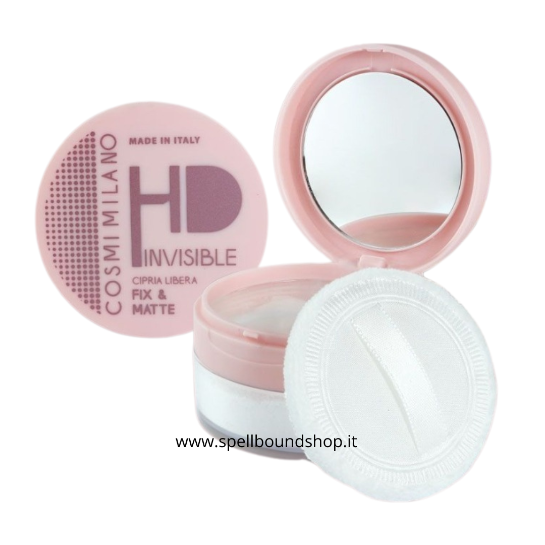 Cipria in polvere libera dalla formula trasparente che affina e uniforma il colorito, donando un finish opaco e raffinato.