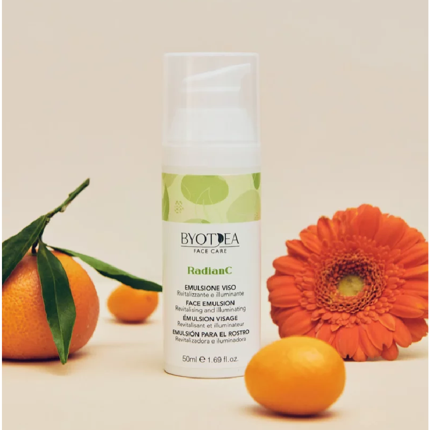 Crea una bellezza radiosa con la Emulsione Viso Rivitalizzante e Illuminante Linea RadiantC Byotea! La sua formula ricca di vitamina C dona luminosità alla pelle mista, e, grazie alla sua versatilità, anche gli uomini possono godere dei suoi benefici. Illumina il tuo viso con questa emulsione rivitalizzante!