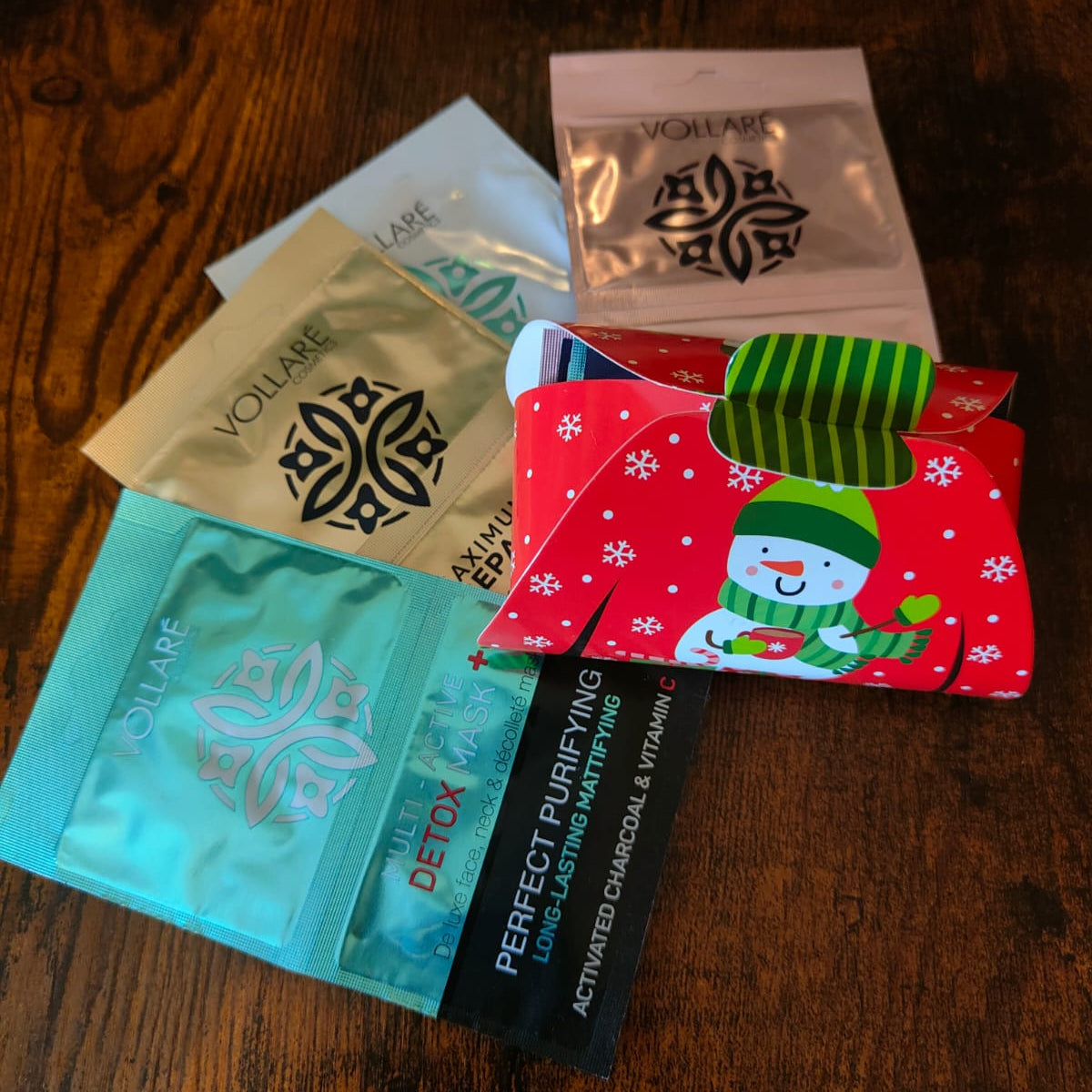 Regala un'esperienza di lusso skincare con questo esclusivo set natalizio da 4 maschere Vollare.