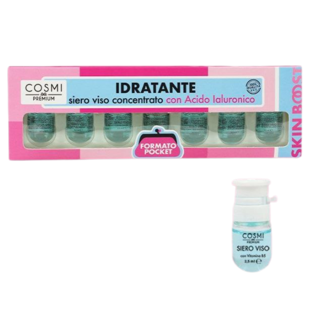 l siero viso concentrato con acido ialuronico in formato pocket è un vero e proprio booster per la pelle del viso e del décolleté. La sua formula leggera e facilmente assorbibile, arricchita con acido ialuronico, un potente idratante naturale, aiuta a mantenere la pelle liscia, setosa e idratata.